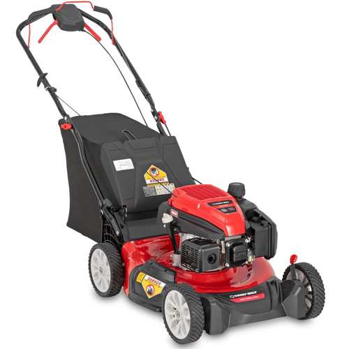 The rear-wheel drive design on the Troy-Bilt®TB310C helps power the mower over rugged terrain with a variable speed transmission designed with dual-lever controls. The Troy-Bilt® engine is designed for simple, no prime, no choke starting and the large 2.3-bushel rear bag helps minimize the time spent emptying the grass clippings. Quickly adjust the cutting height from 1.25"-3.75" with the dual-lever height adjusters, conveniently located near the wheels.